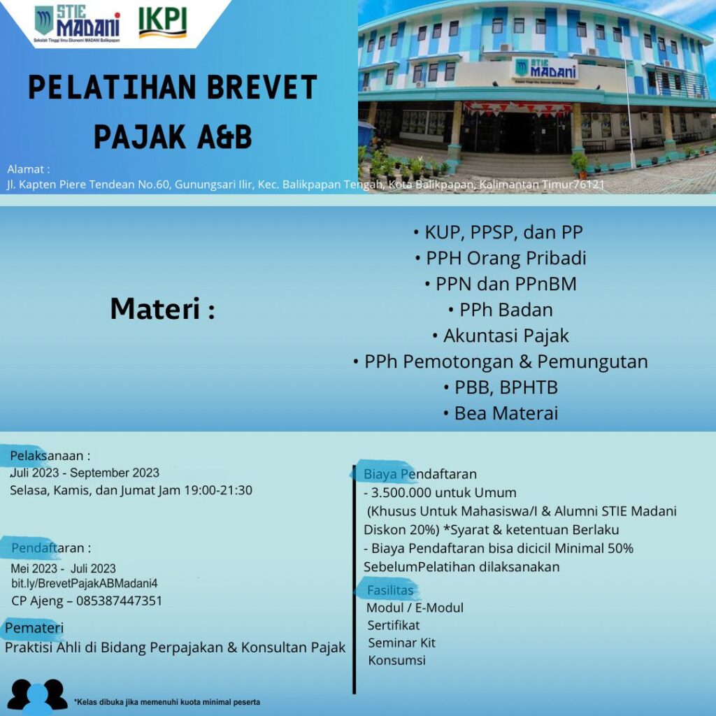 STIE Madani Balikpapan bekerja sama dengan IKPI Balikpapan Membuka kelas Brevet Pajak AB